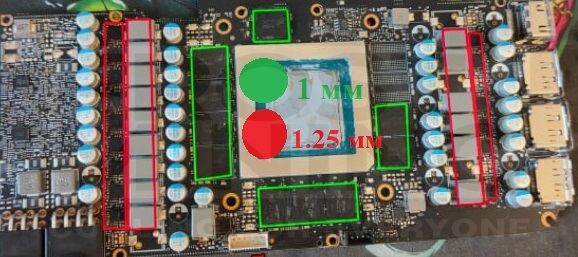Всем доброго времени суток! Праздники пролетели и мы вновь возвращаемся радовать вас толщинами под редкие и популярные модели. Сегодня мы затронем такой вендер GALAX. Все мы знаем что видеокарты GALAX имеют родственную связь с Palit, но всё таки системы охлаждения у них отличаются. На памяти стоят термопрокладки 1 мм и на зоне питания 1.25мм. На бекплейте стоят термопрокладки 2.5мм Из термопрокладок советуем устанавливать FrostMining Maximum Thermal Pads 20Вт/мК и термопасту OTK-1 Если у вас система охлаждения схожа с ,"Бутербродом как у Palit", то толщина на памяти видеокарты будет совсем другая! На памяти видеокарты установлены термопрокладки 2.25мм, на зоне питания 1.25мм. На бэкплейте установлены 2.5мм. На плате термопрокладки везде толщиной 1.25 мм! На бэкплейте всё те же 2.5 мм. Рай для мастера! Так же советуем устанавливать термопрокладки FrostMining Maximum Thermal Pads 20Вт/мК. Ну а на этом всё! Ждите следующую подборку толщин, не забывайте про промокод в 10% скидки!