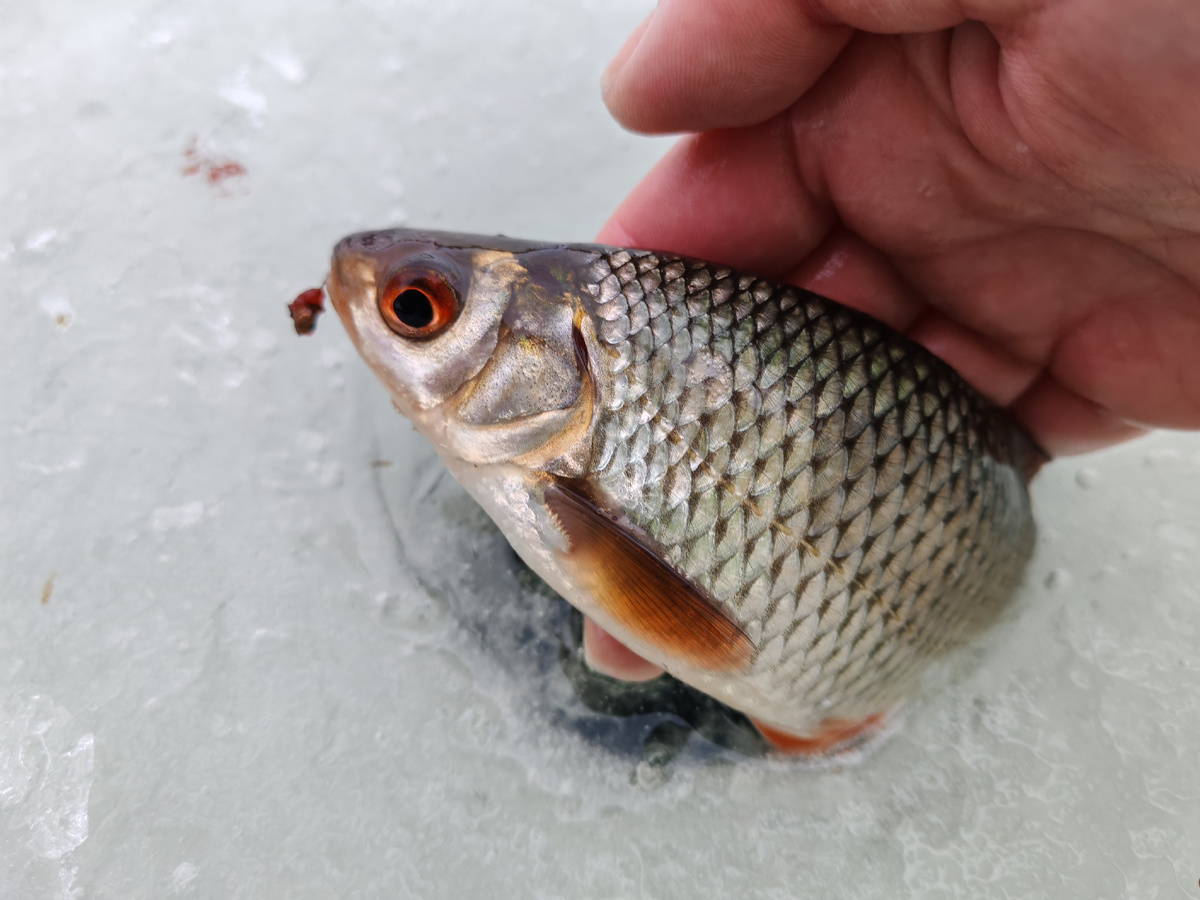 После обеда, на обратном пути к машине, я решила проверить утренние лунки. В одной из них, словно подарок судьбы, таки попались две толстенькие красноглазые! Этот момент стал кульминацией дня, доказав, что терпение и настойчивость всегда вознаграждаются.