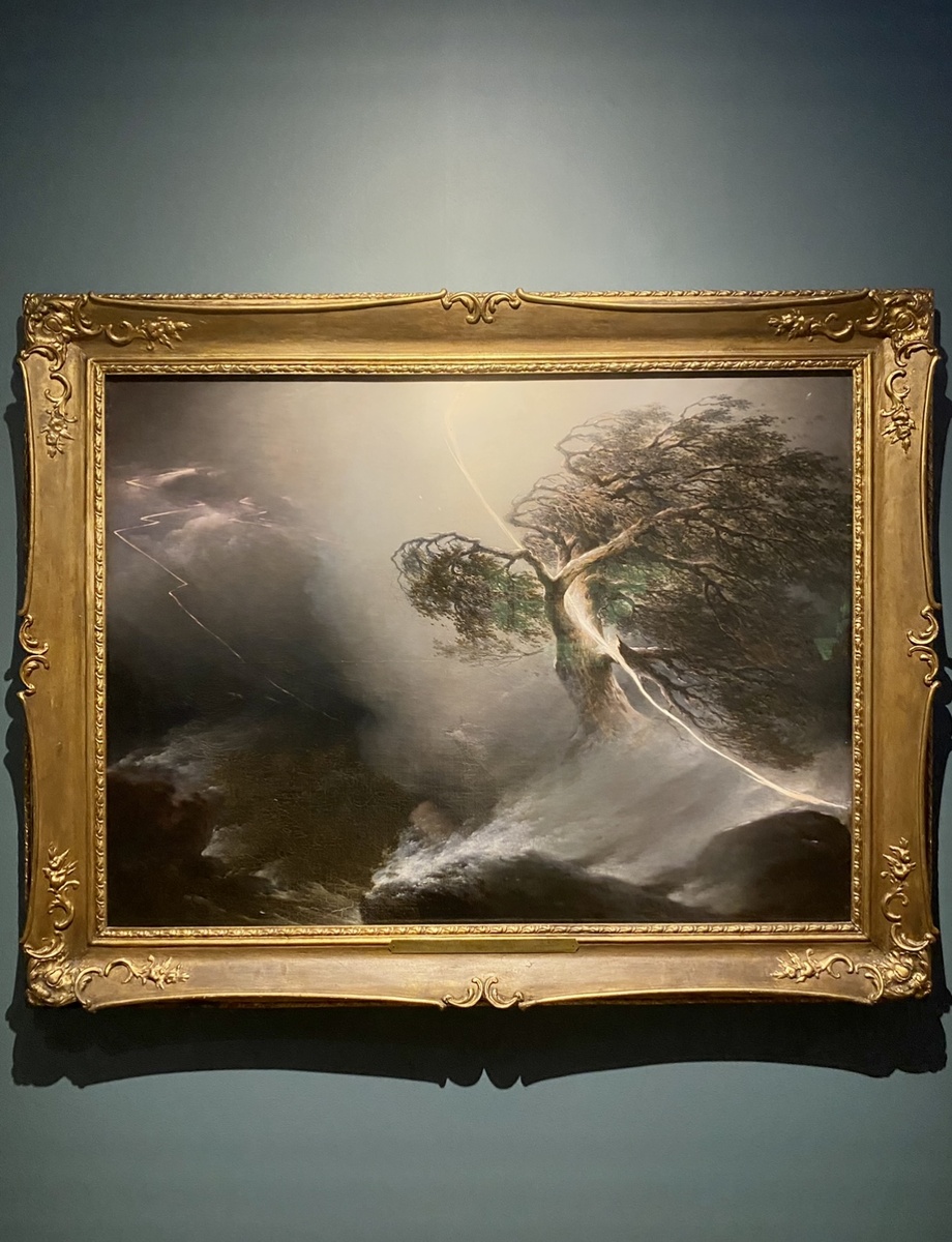 Максим Никифорович Воробьев был наверное самым известным представителем романтизма в отечественной живописи. Его ученики даже именовались «Воробьевской школой». Элегантные и умиротворенные романтические пейзажи Воробьева неизменно пользовались вниманием Александра Христофоровича Бенкендорфа да и самого государя Николая Павловича. В них всегда было что-то этакое. С «немецким» привкусом… Вообще принято считать, что в большинстве своих работ Максим Никифорович следовал пожеланиям многочисленных аристократических заказчиков внимательно следивших за художественными предпочтениями императорского двора. Хотя иногда он мог позволить себе выразить собственные взгляды и эмоций. Такова, на мой взгляд, его потрясающая «Гроза», которую он написал уже в 55 лет и которую современники совершенно не оценили. Тут вспоминается знаменитое, хотя к тому времени уже изрядно подзабытое. «Sturm und Drang», Гете и Шиллер. «…И молний блеск наводит страх». Конечно опять с «немецкими акцентом», но уже со своей