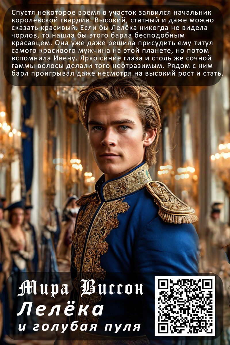 Спустя некоторое время в участок заявился начальник королевской гвардии. Высокий, статный и даже можно сказать красивый. Если бы Лелёка никогда не видела чорлов, то нашла бы этого барла бесподобным красавцем. Она уже даже решила присудить ему титул самого красивого мужчина на этой планете, но потом вспомнила Ивену. Ярко синие глаза и столь же сочной гаммы волосы делали того неотразимым. Рядом с ним барл проигрывал даже несмотря на высокий рост и стать. Безусловно мужчина был красивый, правильные черты лица, прямой нос, как нарисованные брови, умные светло-серые глаза, густые светлые волосы. Но всё равно, поставь рядом Ивену, и будет выглядеть так, как будто с него сошли краски. «Все барлы какие-то полинявшие», – подумала девушка, причисляя и себя к последним. Пока Лелёка беспардонно разглядывала молодого человека, Маркеус рассказывал ему о том, что произошло. В конце разговора он представил девушку: – Вот наша меткая героиня. Знакомьтесь Сигрус, это Лелёка. Лелёка, это начальник корол