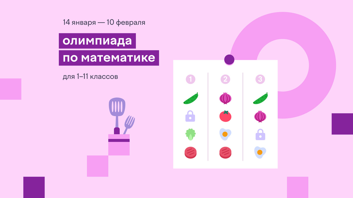 Новая олимпиада! На этот раз — по математике. Игровые задания первого тура ждут ребят из 1–11 классов на сайте до 10 февраля включительно. Расскажите об этом ребенку и предложите проверить свои знания.