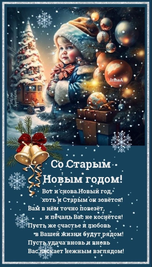 В Старый Новый год примите самые тёплые пожелания! Пускай дом будет наполнен уютом и благополучием. Пускай в семье царит взаимопонимание, взаимоуважение и поддержка. Пускай все невзгоды, разочарования, обиды и непонимание останутся в году, который закончился. Удачи, любви, новых грандиозных планов и возможностей для осуществления всех желаний! С уважением, ваши Алексей и Марина.