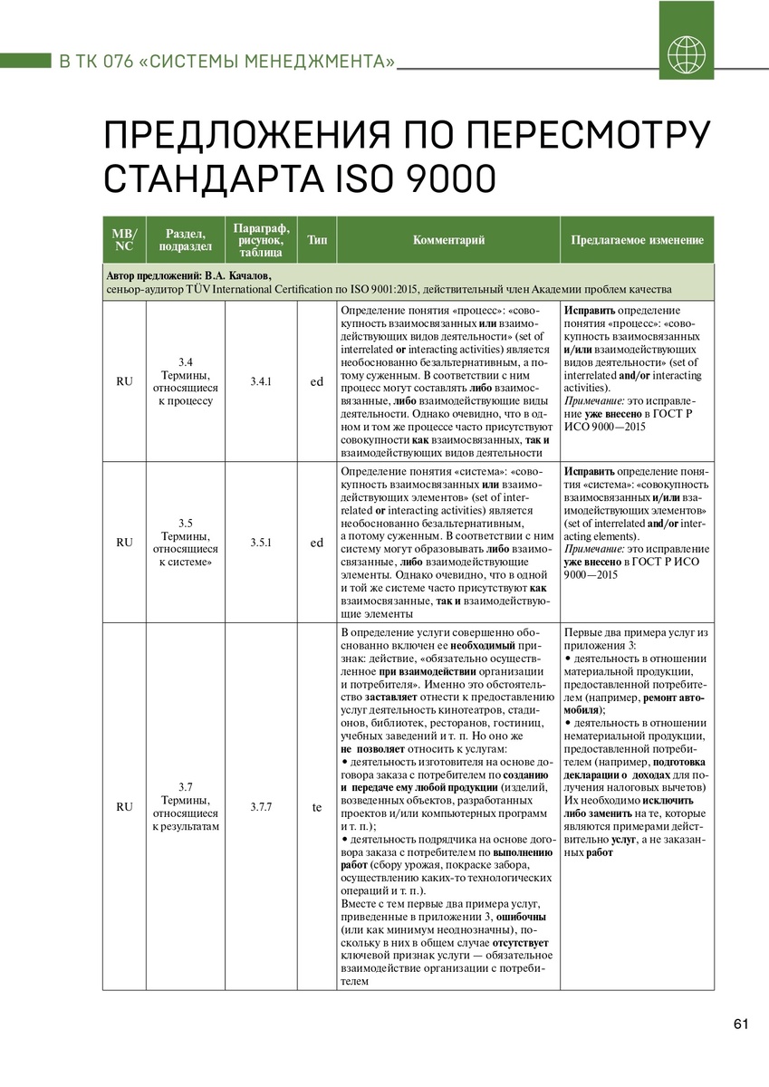 Продолжаем публикацию предложений по пересмотру стандарта ISO 9000.