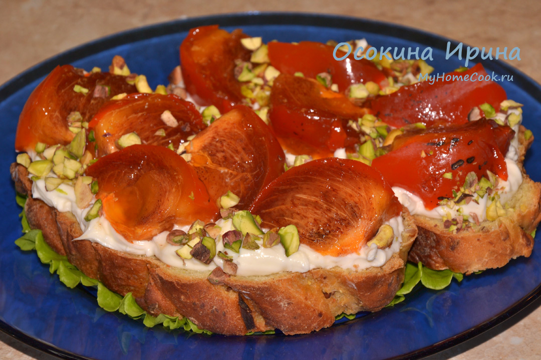 Обожаю хурму и в сезон стараюсь чаще вводить её в меню - всё-таки зимних фруктов не так много) Сегодня с ней бутерброды: ломти мультизернового хлеба подсушила на сухой горячей сковороде и охладила. В пиалке смешала 150 г творожного сыра и 1 ст.л. жидкого мёда до однородности, густо смазала подготовленный хлеб, поверх разложила сегменты спелой хурмы, обсыпала рубленными фисташками и сразу подала. С чайком - кофейком просто улёт) Приятного аппетита