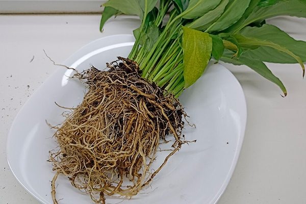 - Повреждённые или гнилые корни. Если вы замечаете, что у спатифиллума есть повреждённые или гнилые корни, удалите их. Такая процедура поможет предотвратить распространение гнили.