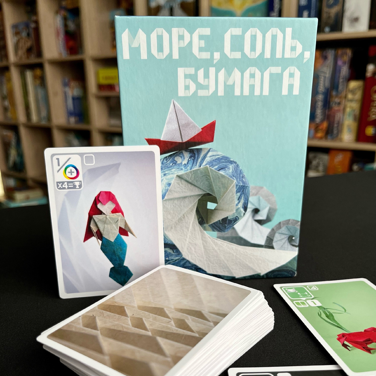 Ох, ну что за малышка… как можно на неё не подсесть? «Море, соль, бумага» из разряда тех игр, о которых думаешь: «Поиграю десять минут и займусь делами». А потом всё как в тумане… Перед вами колода карт и две стопки сброса. В свой ход вы либо берёте верхнюю карту из сброса, либо две карты из колоды: одну оставляете себе, а вторую сбрасываете. Когда у вас на руках появляются пары определённых карт, вы можете их разыграть и получить мгновенный эффект. Это может быть дополнительная карта из колоды, выбранная карта из сброса, ещё один ход или украденная карта у соперника. Каждая разыгранная пара карт принесёт вам 1 ПО в конце раунда. Но помимо пар морских обитателей, в игре есть карты, которые преподнесут вам победные очки в зависимости от их количества у вас на руках. Так, например, если у вас будет одна ракушка, вы ничего не получите. Но если вы соберёте две ракушки, это уже будет 2 ПО, а если три ракушки – 4 ПО. Также вы встретите множители, которые приносят очки за определённый тип кар