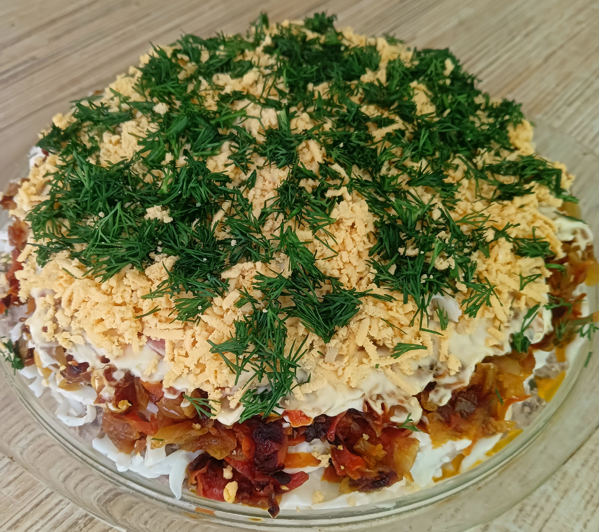 Салат из печенки "Прожорливые гости". Очень вкусно, сытно и довольно экономно.