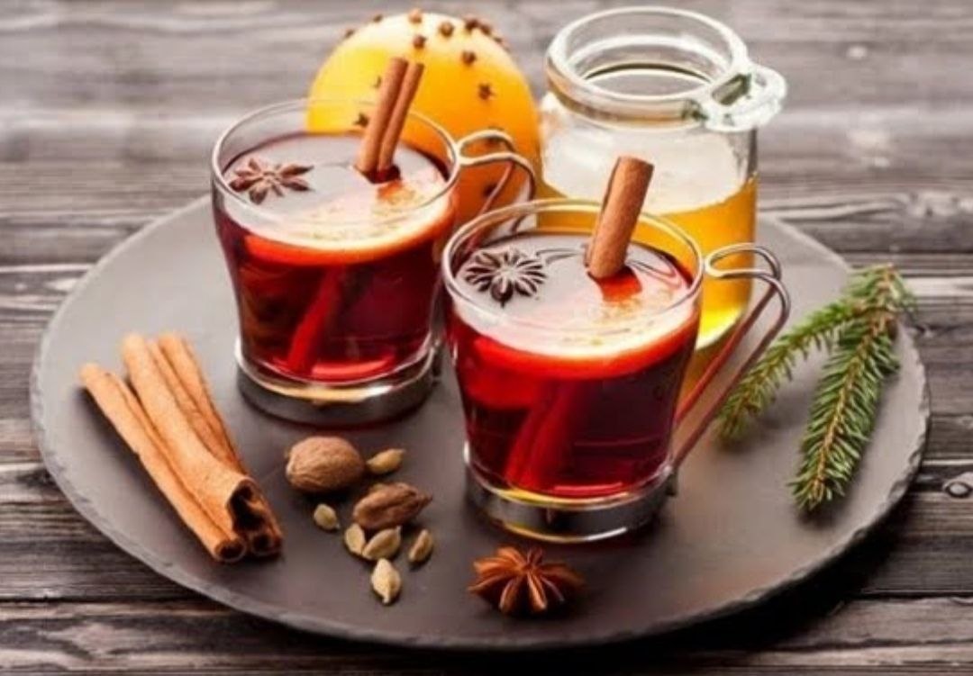 Основа - чай / сок, лимон, душистый перец, бадьян, гвоздика, палочки корицы, кардамон