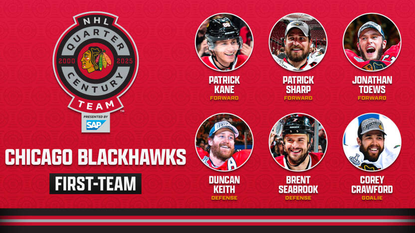 Первым был представлен состав «Чикаго Блэкхокс». Ниже приведен перевод материала с сайта НХЛ о символической сборной «Чикаго» последних 25 лет (с некоторыми дополнениями).