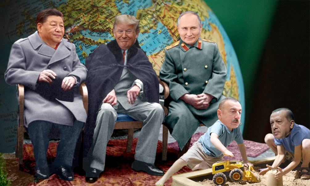 Пока серьезные политики только планируют встречу и будущий раздел мира, мелкие, но агрессивные уже на словах чертят новые границы. Эрдоган прирезает от Сирии к Турции, а Алиев – отнимает у Армении Зангезурский коридор, чтобы получить прямой выход к османам.