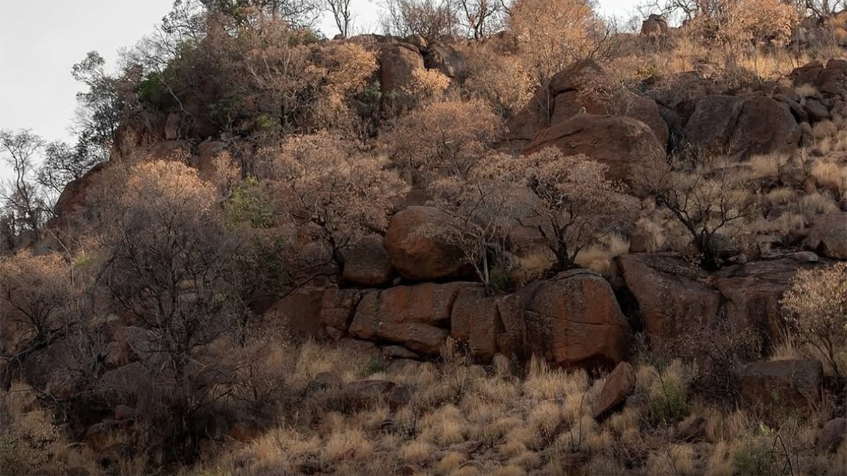 Леопард спрятался среди камней и деревьев — его почти нереально увидеть