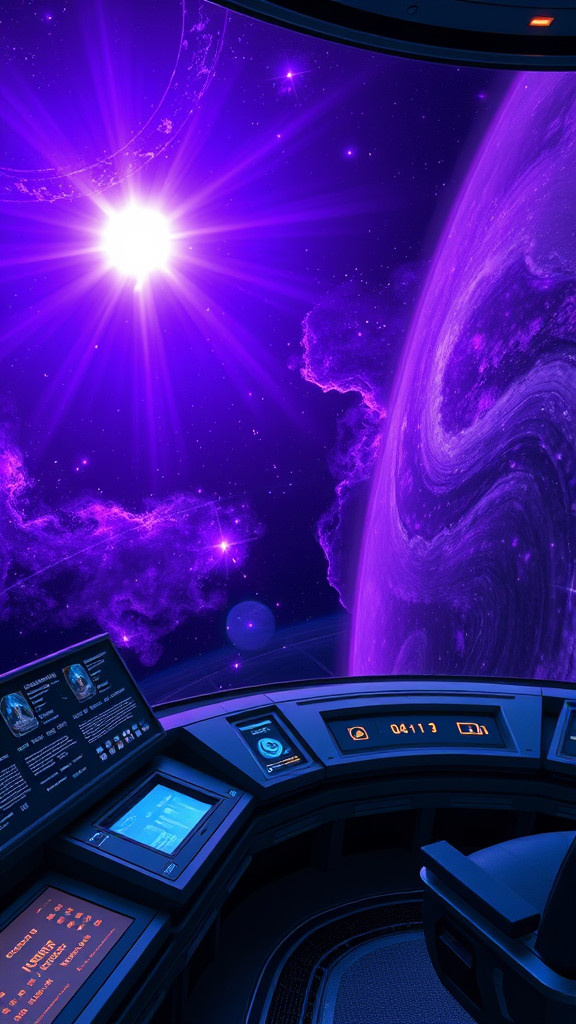 Тем временем на мостике Луна следила за процессом, сидя за своим пультом. Её пальцы непрерывно бегали по панели, но взгляд то и дело задерживался на проекциях Гипериона. Вековые ледяные массивы и сияние звезды Лиры казались волшебными, и она не могла избавиться от чувства досады.