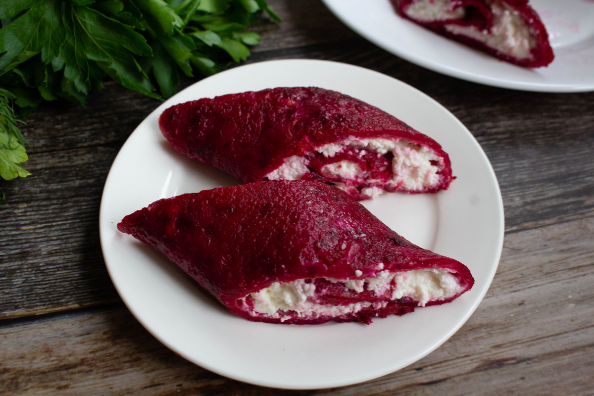 Эти необычные блины готовятся из доступных продуктов, а начинку всегда можно сделать самую разнообразную по своему вкусу. Можно попробовать сделать начинку из чистого творога или творожного сыра, из брынзы, добавить в начинку мелко нарезанную зелень, любимые пряности. Готовить блины просто, главное заранее сварить свеклу. Эти блины получаются яркие, нежные, вкусные и полезные, а свекла в готовых блинах совершенно не чувствуется.