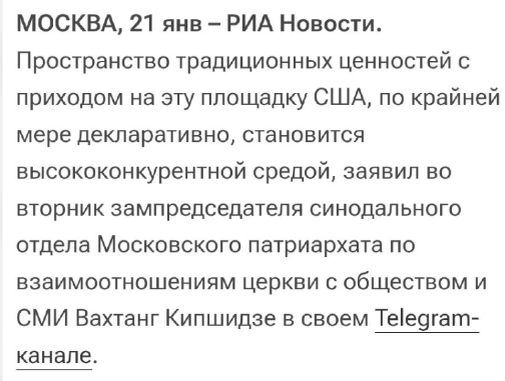 Все могла себе представить, но только не конкуренцию за традиционные ценности. Представляете себе, эти нетрадиционные заокеанцы будут с нами конкурировать за традиционные ценности. И ладно бы они об этом заявили. Выступил новый Трамп и давай рассказывать, что вот сейчас начнется, введет санкции на экспорт традиционных ценностей, начнет шугать кораблики их перевозящие, а может даже организует какую операцию, чтобы прихватить пару тройку килограмм ценностей. Так нет же, не выступал и не говорил. Озаботилась данным обстоятельством наша любимая церковь православная. Вот уж неуемные какие, в каждой бочке. Ну как так-то, мы их уже почти во всем победили, догнали и опередили, а уж в области традиционных ценностей нам равных не было. Какие уж тут орешники и прочая фикня летающая. В этой части мы всю планету лет на 200 позади оставили. Когда американцы и китайцы будут свои флаги ставить на Марсе там уже будут наши традиционные ценности. Причем на все про все у нас лет пять ушло. Можем когда з