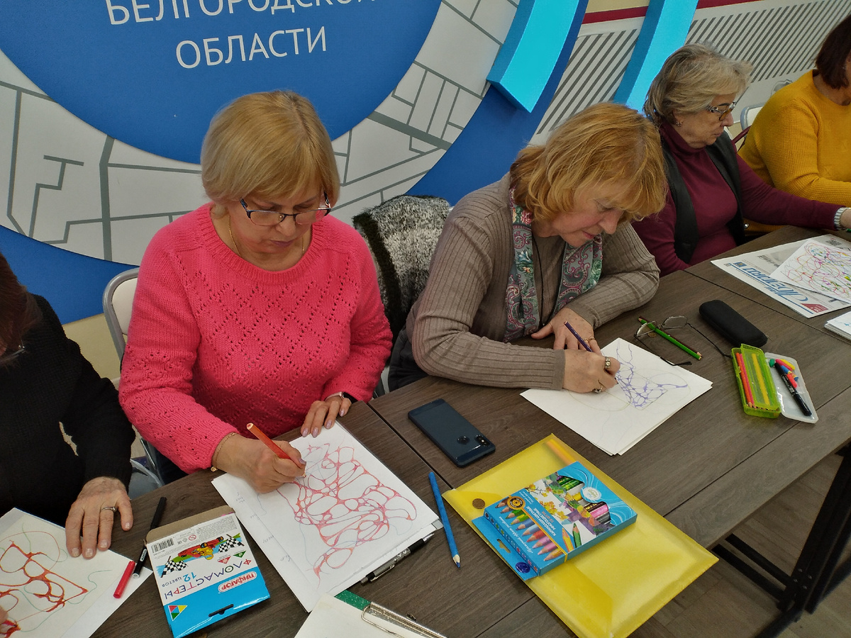 Сегодня на площадке Штаба общественной поддержки Партии «ЕДИНАЯ РОССИЯ» Ларионова Людмила Ивановна, бывший преподаватель "Детской Школы искусств № 1" города Белгорода провела для нас урок по нейрографике. Мы познакомились с самим понятием "нейрографика", узнали как правильно рисовать нейрографику, узнали, как она работает и попробовали сами нарисовать. МК прошёл интересно. Теперь мы будем не только медитировать рисуя, но и пробовать прорабатывать свои проблемы и ускорять исполнения своих желаний при помощи нейрографики. А серебряный возраст, к которому мы подошли, даёт нам время и возможность заниматься тем, чем хочется.