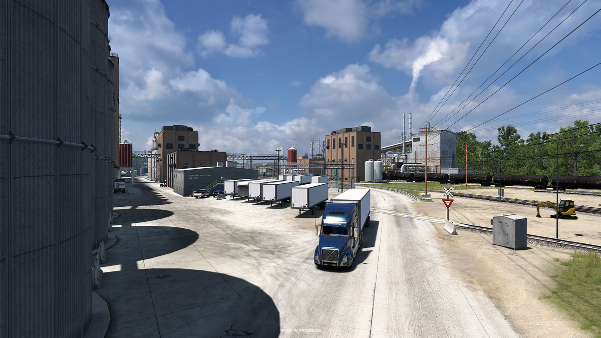 Штат Миссури также известен как «Штат Шоу-Ми», и сегодня мы рады показать вам некоторые из созданных на заказ депо для этого предстоящего дополнения к карте для American Truck Simulator! Во время ваших будущих поездок по Миссури вы сможете доставлять товары на некоторые из наших специализированных складов, таких как животноводческие фермы, растениеводческие фермы, элеваторы и речные порты! Многие из этих отраслей промышленности вдохновлены реальными локациями в Миссури и имеют специальные места погрузки и разгрузки для каждого типа груза, находящегося там. Чтобы поделиться более подробной информацией об их создании, мы поговорили с некоторыми участниками команды о том, как воплощаются в жизнь эти пользовательские хранилища. «Всё начинается на этапе подготовки к выпуску дополнения», — говорит Лукас, один из наших дизайнеров карт. «Руководитель разработки дополнения сотрудничает с исследовательским отделом и командой по созданию пользовательских депо, чтобы выбрать потенциальных кандидат