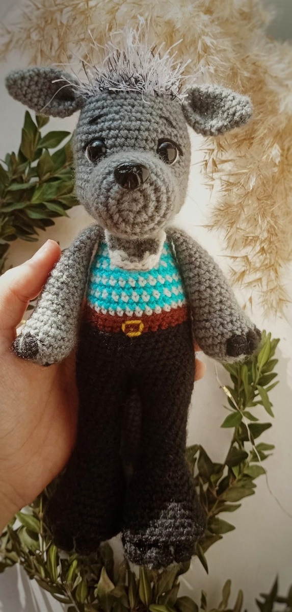 Рост игрушки до 40см при использовании плюшевой пряжи.