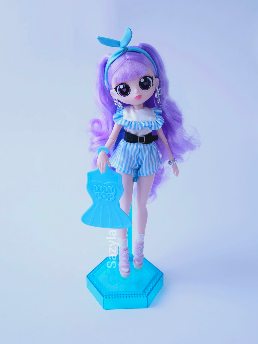 Эта кукла мне напоминает нечто среднее между LOL OMG и LOL OMG Fierce, хотя компания-производитель совсем другая. Илиана бренда Lulu Роp понравилась мне больше всего. Я долго не решалась ee взять, потому что на Амазон она стоила слишком дорого. A потом и вовсе закончилась, так что я просто вычеркнула её из своего виш-листа. Но тут недавно увидела ее в Окее с большой скидкой и не смогла удержаться. По лёгенде бренда четыре выпущенные куклы-это к-поп группа. Правда никаких атрибутов к выступлению(типа микрофонов) не идет,зато есть непонятная пластиковая вешалка сомнительного применения. Не знаю, что по задумне авторов с ней должна была делать кукла, но я на нее теперь вешаю юбки. Отлично держится и не мнется из-за зажимов. Из интересного у куклы все детали, кроме головы и торса, из резины. И если с ногами я еще могу это поняты, что вот резиновые шарнирыя не очень люблю. Сломать их, конечно, намного сложнее, зато достаточно просто погнуть. Кисти у куклы очень красивые, мне нравится