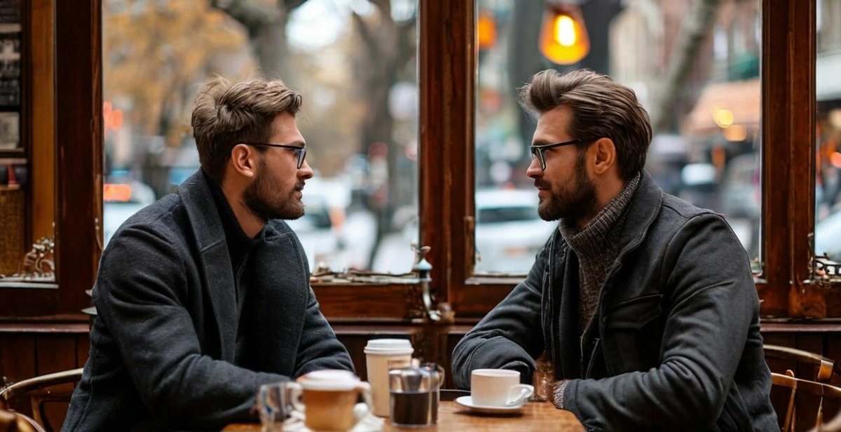 Рядом с его столиком стоял мужчина в тёмном костюме. Он был необычайно похож на Дмитрия, но что-то в нём отличалось: осанка, выражение лица, взгляд. Этот мужчина излучал уверенность и силу, чего Дмитрий давно не чувствовал в себе. Его глаза были как холодные огни, которые прожигали насквозь.
