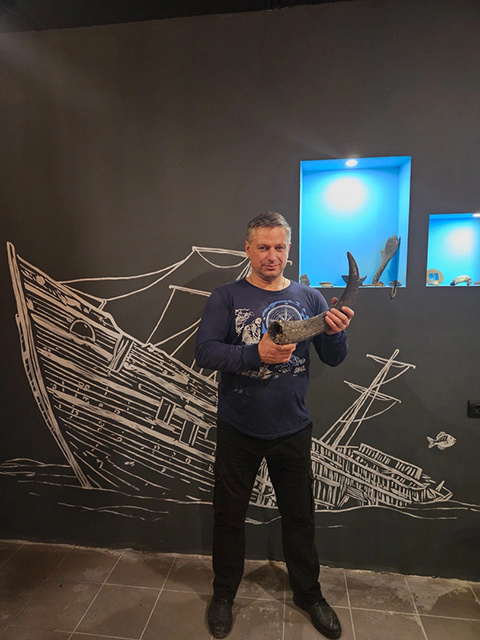Теперь на базе «Меридиана» в Мокве под найденные когда-то в курских реках необычные предметы отведена целая комната. Оформили ее в морской тематике, артефакты разместили в нишах с голубой подсветкой. Будто в иллюминатор смотришь.