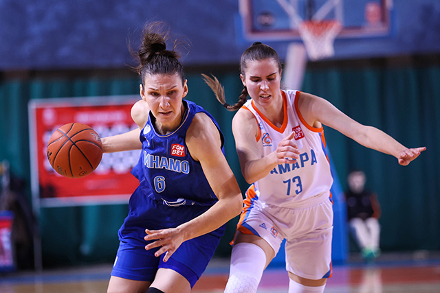 16 января баскетболистки курского «Динамо» провели предпоследний матч первого этапа регулярного чемпионата женской премьер-лиги. На выезде они играли с БК «Самара». После равных двух периодов в городе на Волге гостьи под руководством Сергея Вознюка одержали третью подряд победу в новом году. «Динамо»: ШТАНЬКО – 21 очко, Репникова – 13, Шабанова – 10. Так совпало, что и «молодежка», и основная команда «Динамо» проводили матчи чемпионата в Самаре. «Фарм» одержал две уверенные победы. «Старшие товарищи» тоже не подвели. Лишь в первой половине матча хозяйки играли с курянками на равных. Итог 10-минутных баскетбольных качелей подвела Александра Штанько – 20:20. Первую треть 2-го периода мощнее сыграли хозяйки, забив в том числе два трехочковых. «Самара» снова вырвалась вперед. Погоню организовала Штанько, 8 очков подряд которой сильно помогли Курску не отстать. Два ее же штрафных сократили волжский отрыв до минимума. Средний бросок Жасмин Томас вернул преимущество «Динамо» перед уходом на б