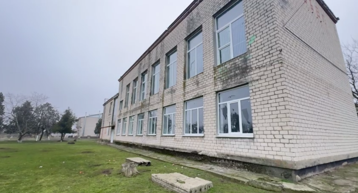 Здание школы также пострадало от обстрела. В нем выбиты пластиковые окна.