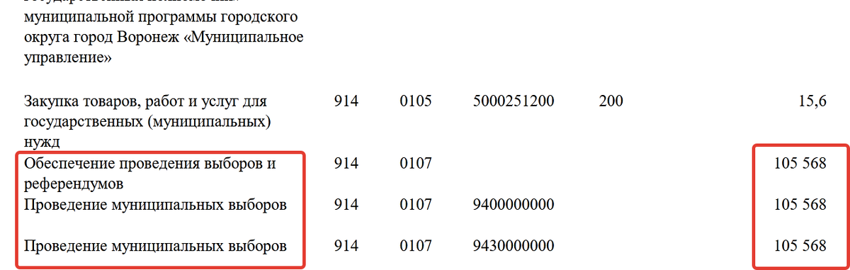 Условная стоимость выборов одного депутата (без учета средств его избирательного фонда) составит для бюджета в среднем 3 млн рублей. Напомним, Воронежская городская Дума формируется из 36 депутатов, из которых 24 избираются по округам, а 12 – по партийным спискам. скриншот из решения Воронежской гордумы от 25.12.2024 г. "О бюджете городского округа город Воронеж на 2025 год". Можно сказать, что расходы на проведение выборов в Воронежскую гордуму даны со «скидкой»: ведь в городе избирательные комиссии одновременно будут работать и в рамках проведения выборов в Воронежскую областную думу, которые также должны состояться во второе воскресение сентября. Бюджетные расходы на эту избирательную кампанию, в результате которой в целом по региону должны выбрать еще 56 депутатов (28+28), составят 471,1 млн рублей. скриншот из регионального закона "О бюджете Воронежской области на 2025 год". Таким образом, расходы налогоплательщиков по выборам депутатов в Воронежскую областную и городскую думы сос
