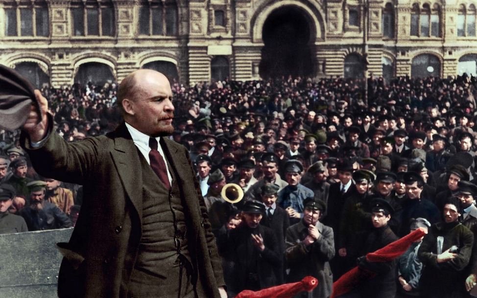 В апреле 1917 г. Ленин приезжает в Петроград, и уже на следующий день по приезду предлагает программу перехода буржуазно-демократической революции к социалистической, провозглашает лозунг «Вся власть Советам!». Уже в октябре он выступает одним из главных организаторов и руководителей Октябрьского вооруженного восстания; в конце октября и начале ноября высланные по его личному распоряжению отряды способствуют установлению советской власти в Москве.