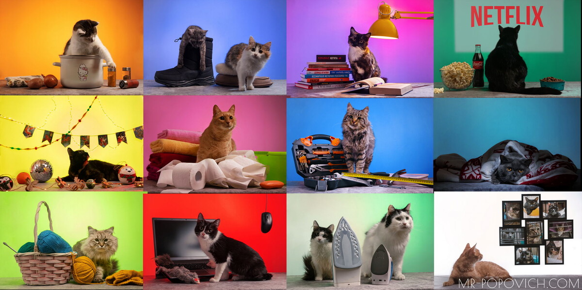Однажды мы с супругой загорелись желанием сделать календарь с котами. У нас были некоторые связи с одним из приютов, поэтому мы легко договорились о предстоящие фотосъемке. В приюте «Муркоша» у нас было в распоряжении около 500 котов, но у нас не было места для съемки, поэтому мы делали фотографии в коридоре приюта. Концепция заключалась в том, чтобы в шуточной форме дать инструкцию по использованию кота. Ведь вы берете кота из приюта и вам нужно знать, как с ним обращаться. Поэтому календарь так и называется «Кот: Инструкция по применению (иллюстрированные советы на целый год)». Мы показали несколько разных ситуаций из жизни: просмотр фильма на Нетфликс, глажка белья, приготовление супа, ремонт по дому, работа за ноутбуком и т.д. У нас была целая машина реквизита с бесконечным количеством вещей: от кастрюль и полотенец до книг и обуви. Кстати, еще до съемки мы сделали эскизы будущих кадров. Подписи к рисункам были сделаны моим научным руководителем из университета (Исаченко Оксана Мих