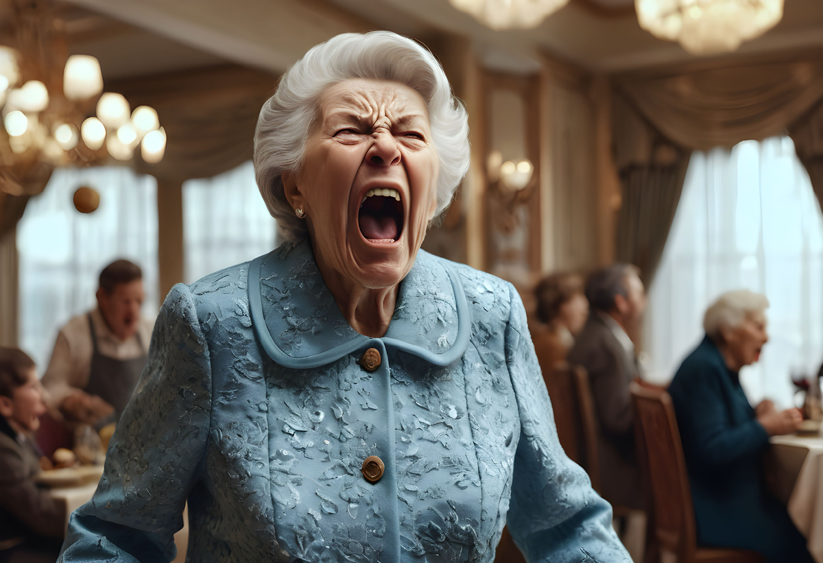 — Где мой стейк?! — воскликнула Наталья, в глазах её читался гнев. — Это просто неприемлемо!