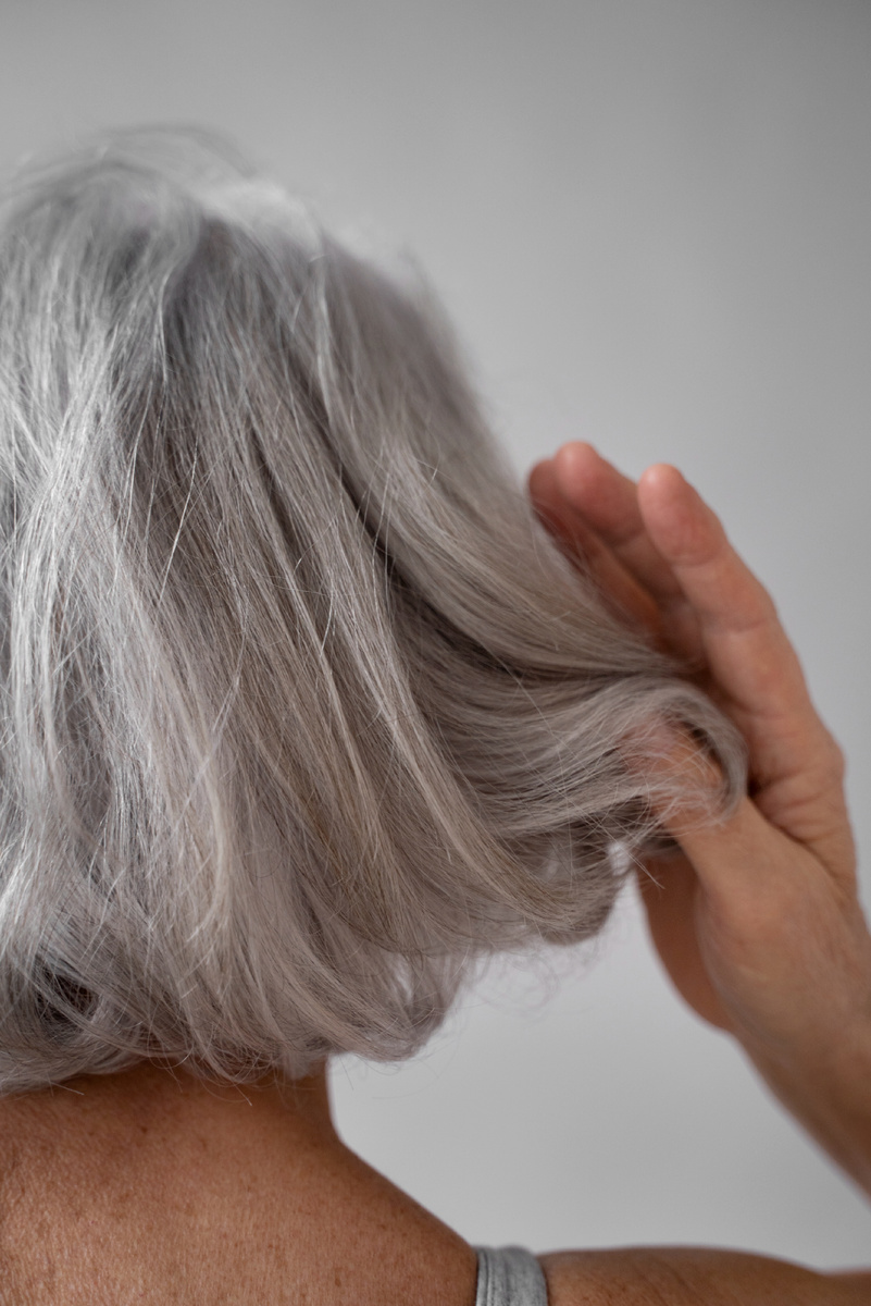 Но со временем фабрика начинает «экономить ресурсы». В какой-то момент меланоциты (клетки, производящие меланин) работают все медленнее, а затем совсем прекращают работу. Без меланина волосы становятся белыми или серыми.
