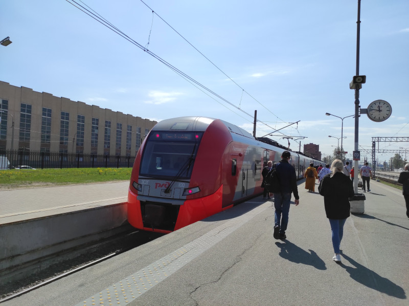 Петергоф знаменит своим дворцово-парковым ансамблем, но мы посмотрим две другие его менее известные достопримечательности - вокзал станции Новый Петергоф и собор Петра и Павла, а во второй — сам дворцово-парковый комплекс. Добраться до Петергофа можно разными способами — автобусом, электричкой или «Метеором» по Неве и Финскому заливу. «Метеор» — это, конечно, интересно, но стоит недёшево, да и катался я на нём, правда, давно, в 2006 году. В общем, выбор традиционно пал на электричку, тем более станция Новый Петергоф сама по себе представляет отдельный интерес. Отправляемся с Балтийского вокзала Петербурга с комфортом, на плавной и бесшумной Ласточке, а не гремуче-трясучем «демихе» или «торжке»: Ехать недолго, где-то полчаса. Станция Новый Петергоф примечательна очень красивым вокзалом в готическом стиле по проекту архитектора Н.Л. Бенуа. Вокзал представляет собой уменьшенную копию католического собора в итальянском городе Орвието. Изначально вокзал был тупиковым, но потом дорогу продли