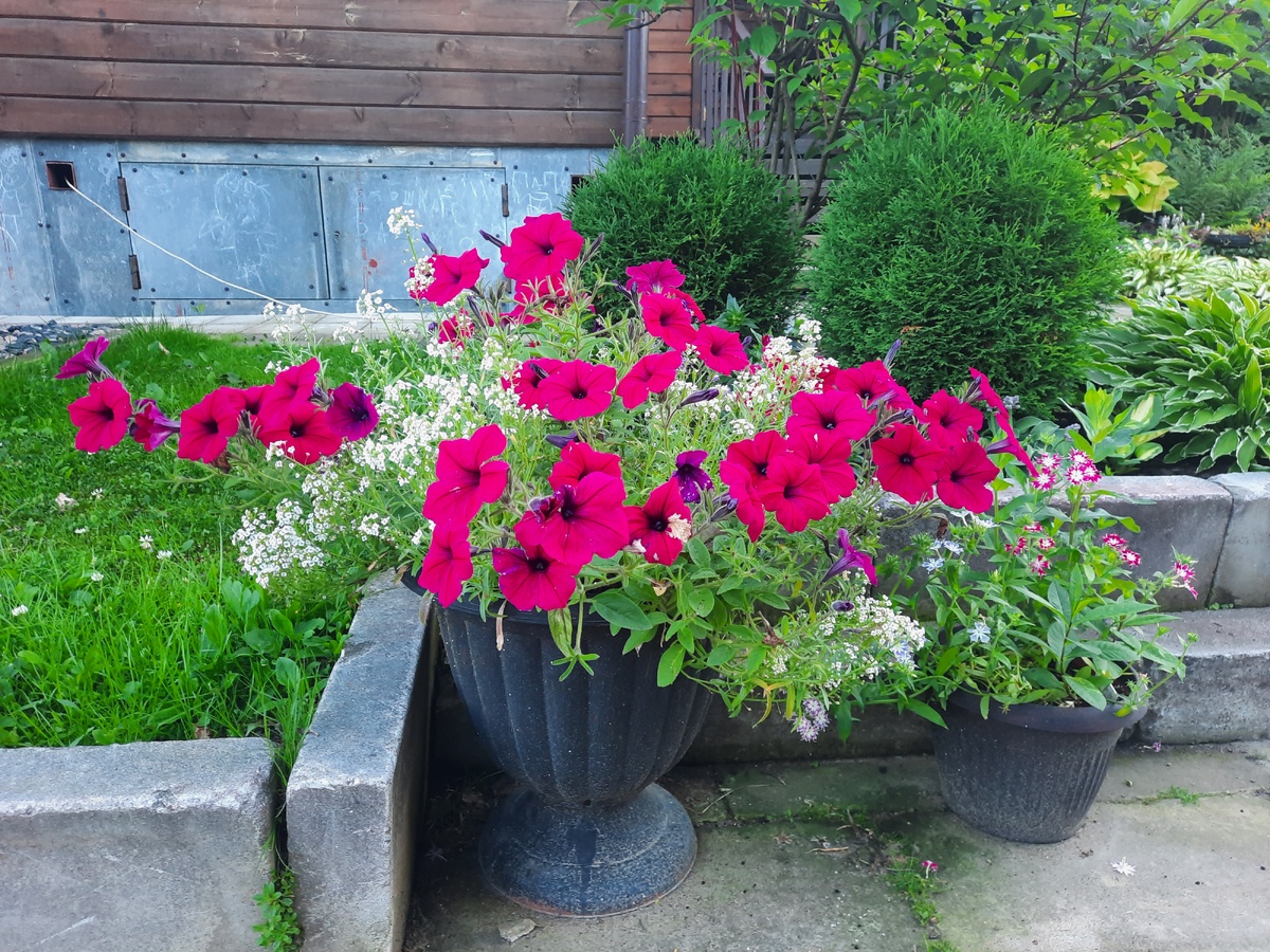 Самый "импозантный" объект, кашпо с петунией Тайдалой и алиссумом.