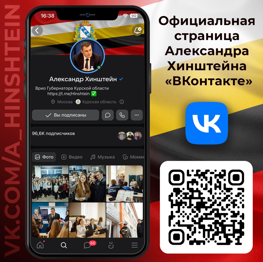 Приглашаем вас подписаться на официальный аккаунт врио губернатора Курской области Александра Хинштейна во «ВКонтакте» vk.com/a_hinshtein