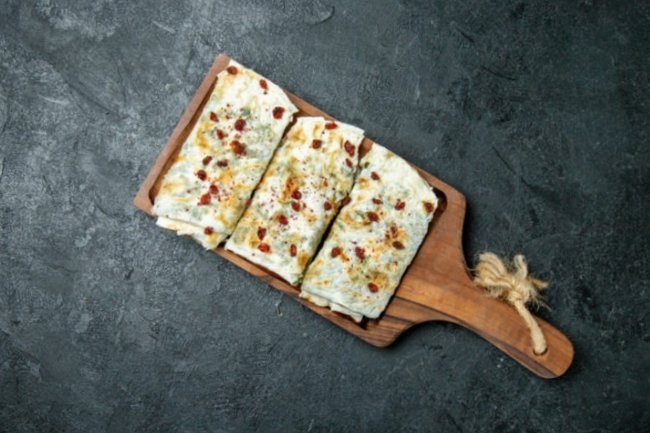- Формирование рулета: Уложите лаваш на поверхность, предназначенную для работы. Равномерно нанесите творожную начинку на лаваш, оставляя небольшие края по бокам. Сложите края и осторожно сверните рулет.