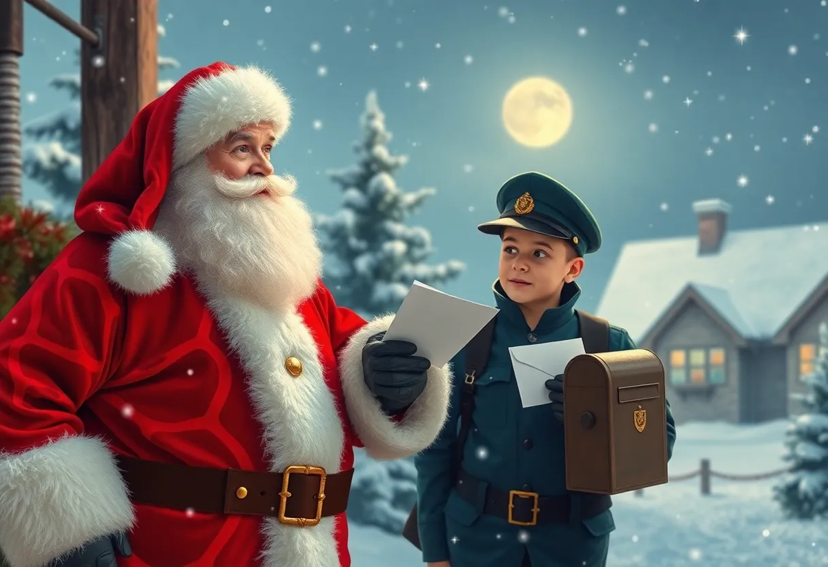 Дед Мороз был занят подготовкой подарков для детей, но как только увидел почтальона, его лицо осветилось доброй улыбкой.