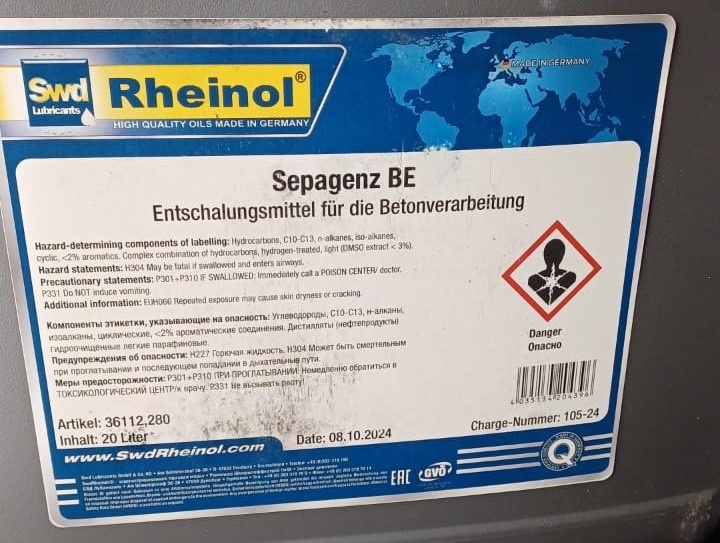 SwdRheinol SEPAGENZ BE - Масло для опалубок и заливочных форм при работе с бетоном значительно выгоднее чем Эмульсол ЭКС-М