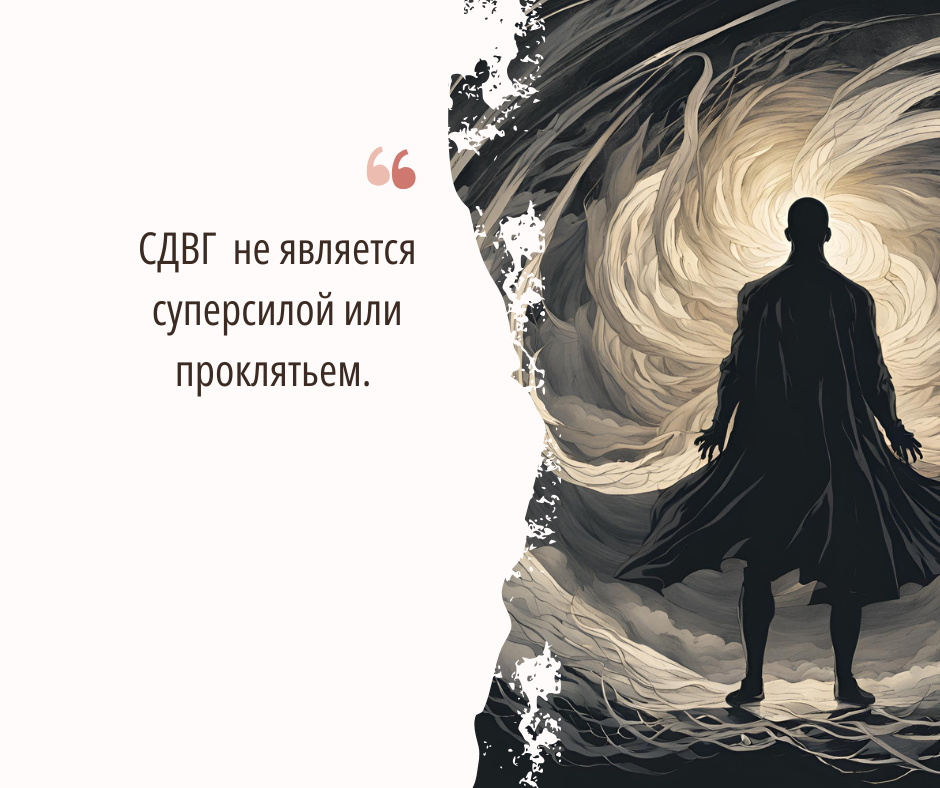 СДВГ по своей сути не является суперсилой или проклятием. «История суперсилы» может дать силу некоторым, но навредить другим, если обесценивает их борьбу или создает нереалистичные ожидания.