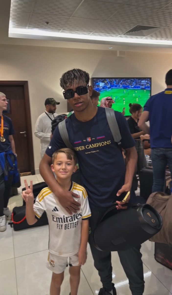 После разгрома «Мадрида» в финале Суперкубка Испании «Барселона» отправилась в аэропорт – матч проходил в Саудовской Аравии, команде нужно было вернуться в Испанию, где уже 15 января состоится игра с «Бетисом» в Кубке. В ВИП-зале аэропорта Джидды подопечных Флика встретил юный поклонник «Мадрида». Мальчишка, набравшись смелости, попросил о фото у главной звезды каталонцев – Ламина Ямаля. Игрок бросил взгляд на футболку парнишки, что-то ему сказала, но от совместной фотографии, конечно, не отказался. Когда ребенок встал рядом с футболистом, Ламин рукой прикрыл эмблему «Реала». Фотография все равно получилась хорошей. Роберт Левандовски последовал примеру младшего товарища по команде. Получилось завербовать ребенка в ряды фанатов «Барсы»? 📸🎥 Обладатели Суперкубка Испании возвращаются в Барселону! В полете каталонцы устроили фотосессию с трофеем 🔥 📸 Игроки «Барсы» знали, что Шченсного удалят. Посмотрите, что они сделали за минуту до того, как поляку показали красную 😍 «Ты должен». Чт