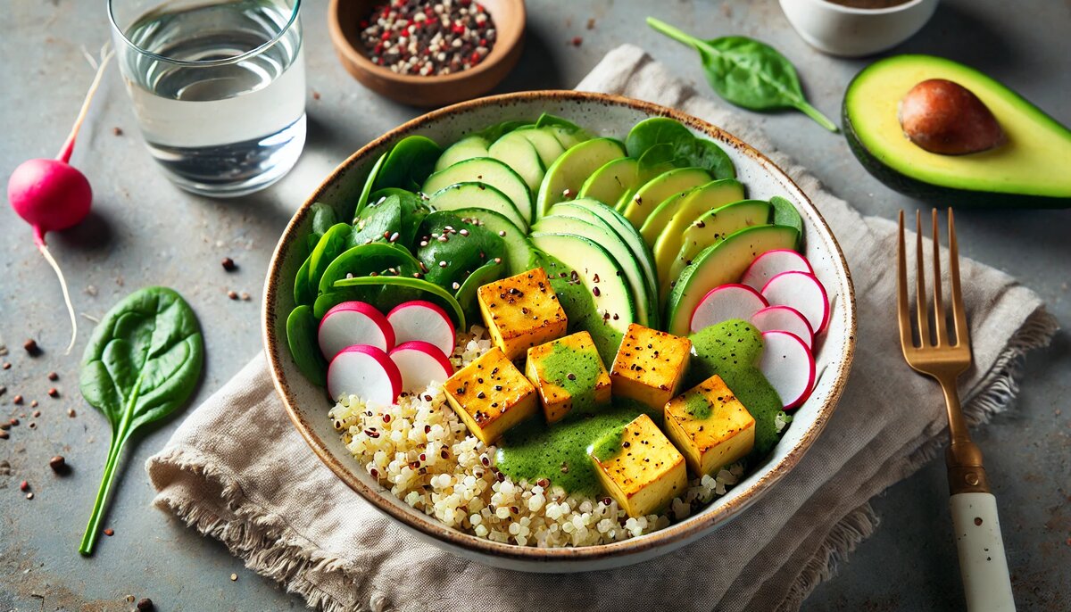 Боул с киноа, тофу и зелёным соусом — это квинтэссенция трендов здорового питания, сбалансированного рациона и экологичного подхода к еде. Это блюдо сочетает в себе суперфуды, свежие овощи и лёгкий ароматный соус, который объединяет все компоненты в гармоничное гастрономическое удовольствие. Такой боул идеально подойдёт для тех, кто стремится питаться полезно, вкусно и с заботой о планете.