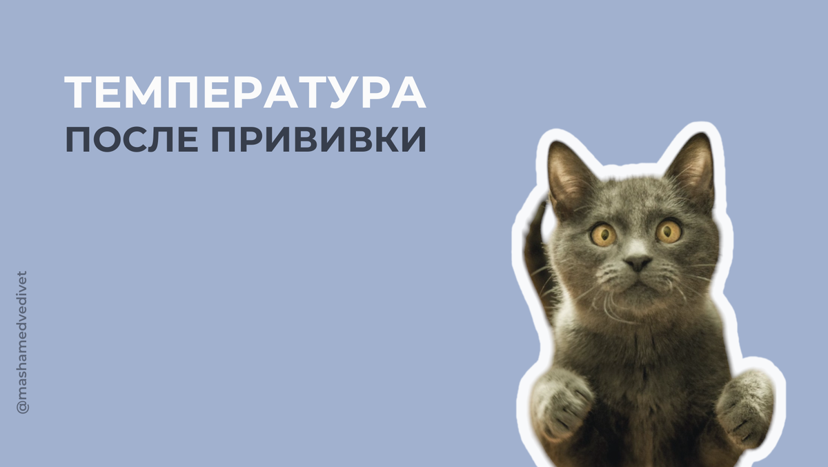 Температура кошки в норме — 38-39 °C. Но иногда после прививки мы можем наблюдать её повышение. Опасно ли это? Давайте разбираться. Если температура поднялась до 39,5°, а питомец стал немного вялым и притихшим, то это нестрашно. Такая реакция на прививку встречается часто и проходит в течение 1-2 дней. Просто обеспечьте своему животному в этот период спокойную обстановку и доступ к свежей воде. А вот случаи, при которых повышение температуры — это веский повод обратиться к врачу: • если температура достигает 40° и выше; • если она сохраняется более 2 дней и сопровождается сильной вялостью, рвотой, диареей, отказом от еды; • если проявляются признаки аллергической реакции: повышенное слюноотделение, затрудненное дыхание, отек. Берегите своих хвостиков 🙌🏼
