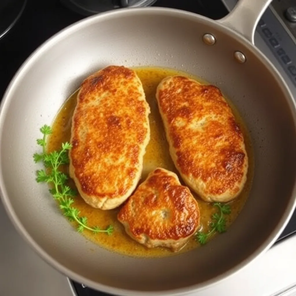 - Обжариваем по 2-3 минуты с каждой стороны, чтобы появилась румяная корочка, а потом накрываем крышкой и ещё на небольшом огне держим 5 минут. Готово!