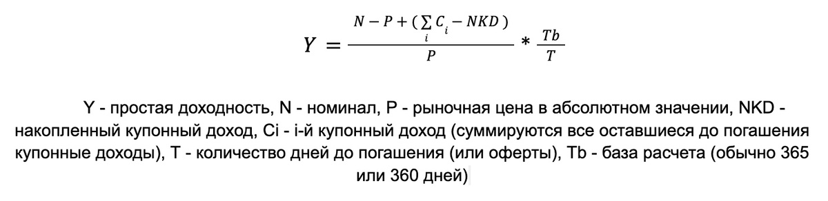 С учетом НКД, в общем случае, формула расчета простой доходности такая: