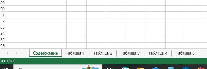 Это необходимо тогда, когда документ Excel состоит из множества листов как на изображении выше и чтобы очень быстро переходить к нужному листу книги стоит сделать «Содержание». Сделать это не составляет большого труда, конечно если делать это постепенно при создании книги Excel, а не когда документ уже сверстан и состоит из нескольких десятков страниц. Итак, начнем. Первый лист документа, при создании громоздких книг я выделяю под содержание книги (см. изображение выше). 1. Заносим в ячейки листа «Содержание» перечень ваших листов документа. 2. Выделяем ячейку с заголовком листа, переходим во вкладку «Вставка» и жмем «Гиперссылка». В открывшемся окне выбираем «Место в документе». 3. В этой же вкладке выбираем лист, ссылку на который Вы хотите сделать. Жмем «ОК». Заголовок вашего листа становится ссылкой на необходимое место вашего документа. Таким же образом можно сделать с каждого листа документа ссылку на «Содержание», чтобы быстро возвращаться к нему из любого места документа. Но со