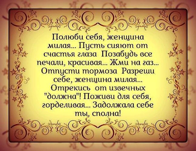 - Проявляйте заботу о себе и делайте для себя приятные вещи — это сильнейший ресурс, который помогает развивать не только любовь к себе, но и опору на себя, а не на внешних людей или обстоятельства.