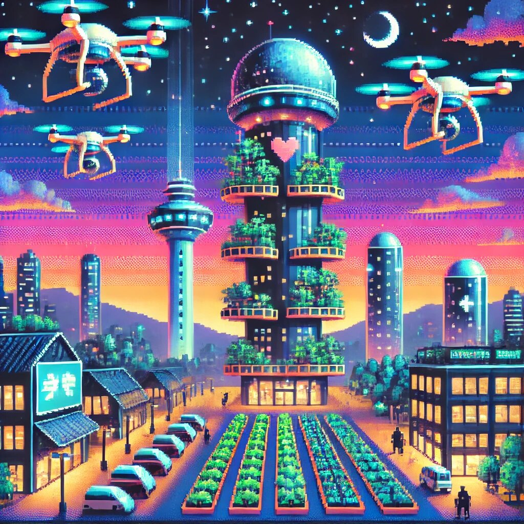 Идея: Вертикальные фермы с полностью автоматизированной системой выращивания, где за всеми процессами ухаживают роботы.