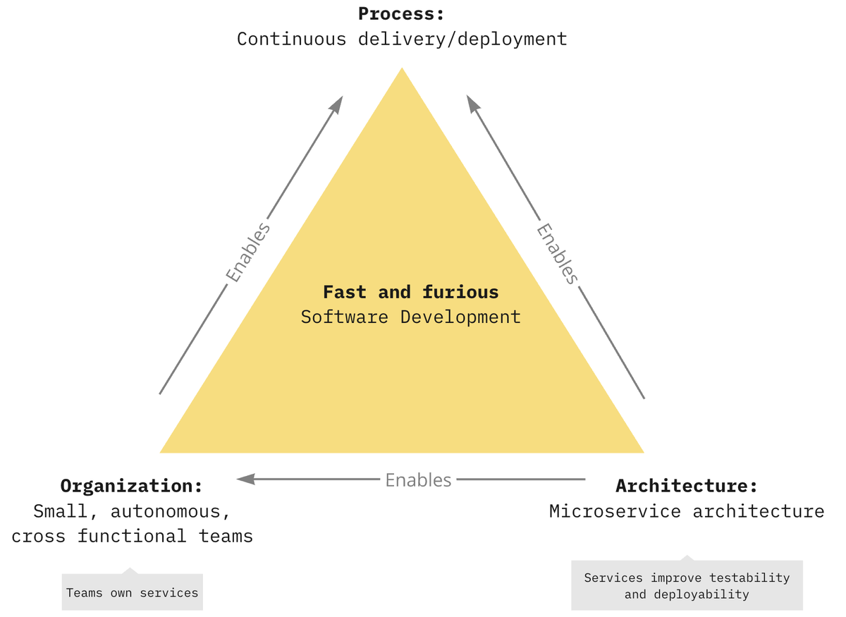 Мне близка точка зрения Криса Ричардсона, с которым я имел честь несколько раз пообедать. Крис — известный эксперт в разработке, специализируется на архитектуре микросервисов, пишет книги на эту тему, много публикует и выступает. Он создал ресурс microservices.io, где собраны ценные материалы по этой архитектуре. Ключевая ценность микросервисов, по мнению Криса, — это ускорение разработки. А это один важнейших факторов для топ-менеджмента ИТ-компаний.
