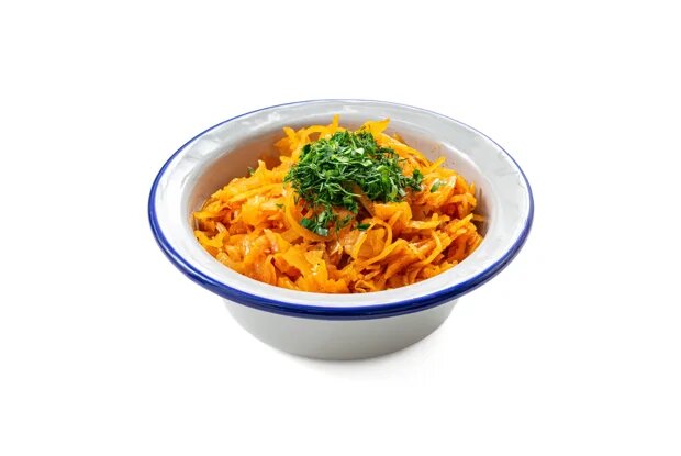 Ингредиенты Белокочанная капуста 1 кг Репчатый лук 1 головка Морковь 1 штука Чеснок 2 зубчика Томатная паста 100 г Вода 150 мл Растительное масло 30 мл Соль по вкусу Молотый черный перец по вкусу Зелень по вкусу 1.Подготовить все ингредиенты. 2.Капусту тонко нашинковать. 3.Лук нарезать мелкими кубиками. 4.Морковь натереть на крупной терке. 5.В толстостенной кастрюле разогреть растительное масло и обжарить лук до прозрачности. 6.Добавить морковь, жарить еще 3 минуты, затем добавить раздавленный через пресс чеснок и перемешать. 7.Добавить капусту и снова перемешать. 8.В воде размешать томатную пасту, залить этой смесью капусту, немного посолить, накрыть крышкой и тушить на небольшом огне около 40 минут, периодически помешивая. 9.Готовую солянку посолить и поперчить по вкусу. 10.Подавать солянку как самостоятельное блюдо или гарнир, украсив зеленью.