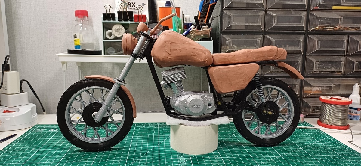 Сделал более глубокий вырез в сидушке, чтобы переход с бака образовывал красивую линию и покрасил в фотошопе