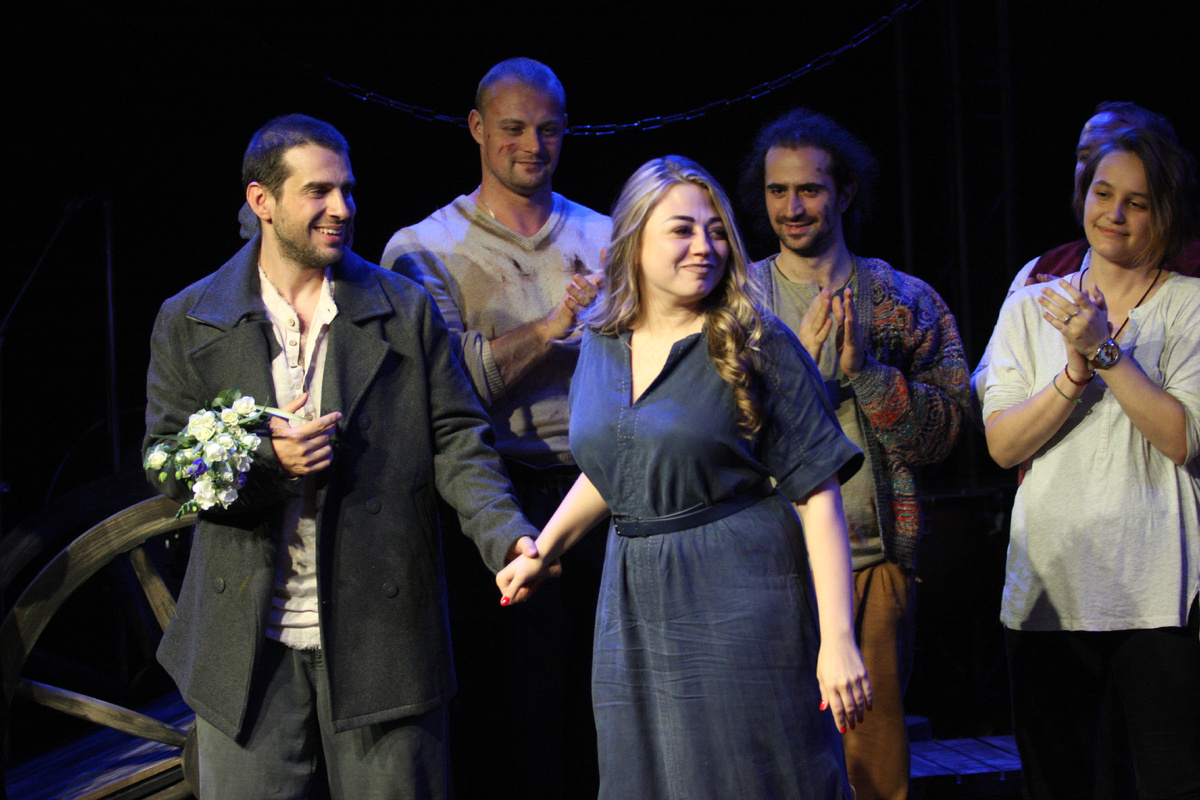 В атмосферу этой истории вы попадаете сразу, едва переступив порог: занавеса здесь нет, всё близко, и сине-лунный тускловатый полусвет окутывает и сцену, и зрительный зал... Нагромождения ящиков, телеги, свисающие цепи – только ли рабочий инструмент, или аллегория тех самых цепей, которые так рвался потерять пролетариат? Или эти цепи невидимыми узами сковывают всех участников драмы, приводя их к неизбежной развязке?..